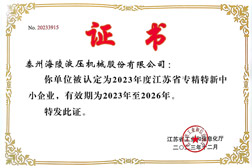 省級專精特新中小企業證書