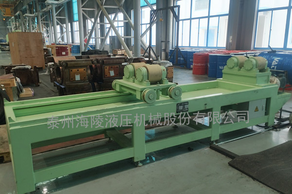 我公司生產的輥旋機主要用于工作輥及中間輥光輥旋轉動作,可實現360°正反向旋。輥旋機配備了旋轉傳動機構、主動輥、從動移動輥。通過減速機帶動主動輥旋轉;可移動托輥臺下端設有移動輪